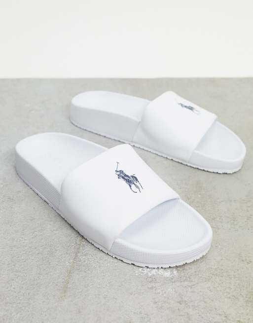 Polo Ralph Lauren Claquettes avec logo bleu marine Blanc Very well made.