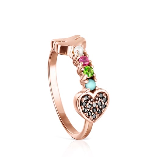 Heart Ring in Rose Silver Vermeil with multicolor Gemstones TOUS Very well made.