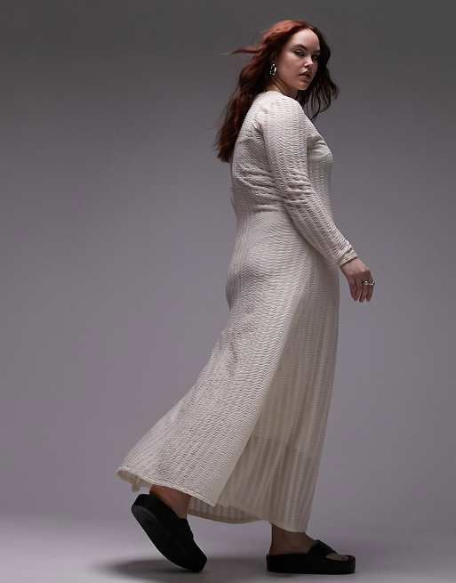 Topshop Curve Lange gebreide jurk met lange mouwen in beige Very well made.