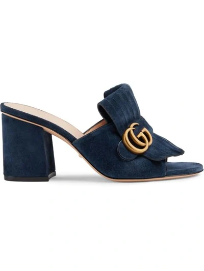 Gucci Navy Suede Gg Marmont Slide Heeled Sandals In Blue ModeSens Very well made.