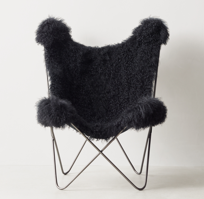 Tye Black Mongolian Lamb Butterfly Chair Dark Steel RH TEEN Very well made.