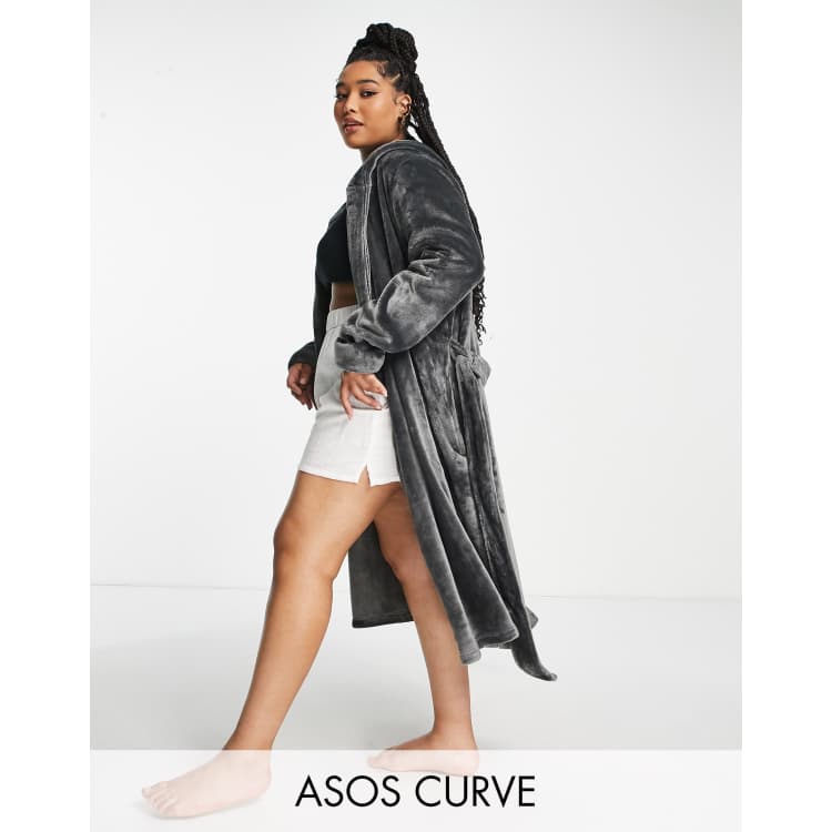ASOS DESIGN Curve super soft fleece midi robe in gray Very well made.