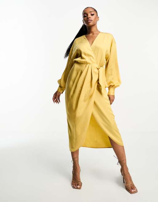 Other Stories Robe portefeuille mi longue Jaune poussi reux Very well made.