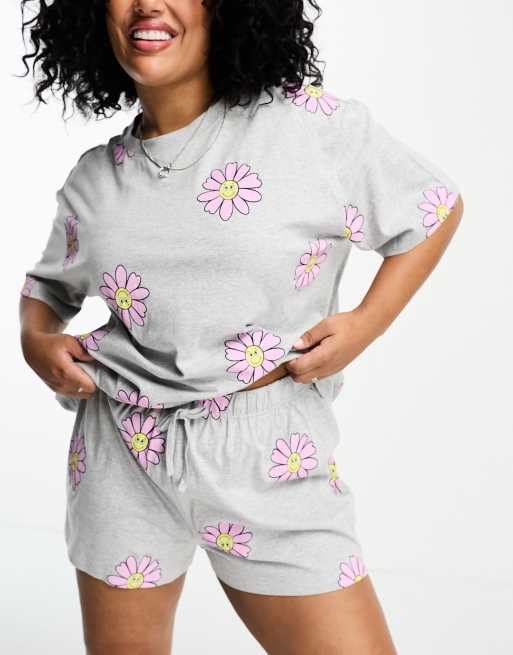 ASOS DESIGN Curve flower oversized tee short pajama set in gray heather Very well made.