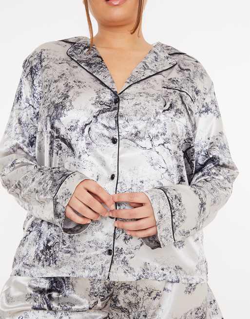 In The Style Plus x Lorna Luxe satin contrast trim pajama shirt and short set in navy multi Very well made.