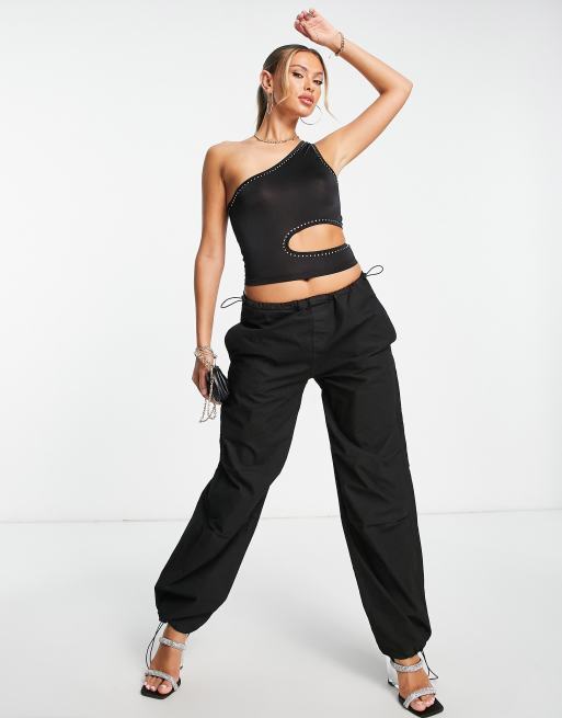 ASOS DESIGN one shoulder hot fix cut out crop top in black ASOS Very well made.