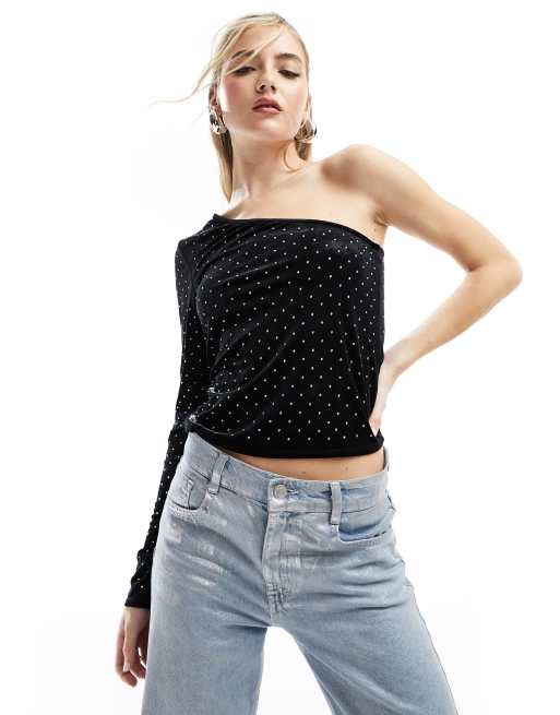 Mango one shoulder hot fix top in black ASOS Very well made.