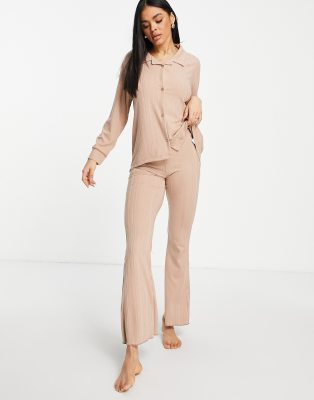 ASOS DESIGN mix match lounge rib flare trouser in brown ASOS Very well made.