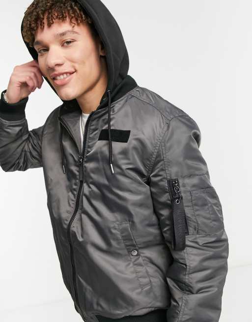 River Island hooded bomber in gray ASOS Very well made.