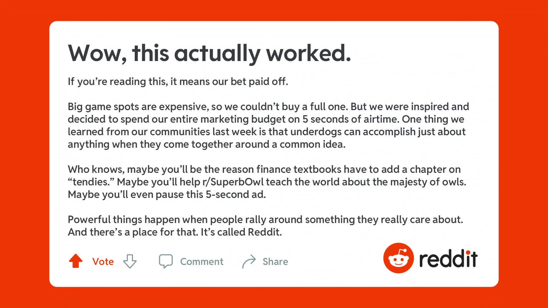 Reddit s Superb Owl Disrupting Paid Media R GA Work Very well made.