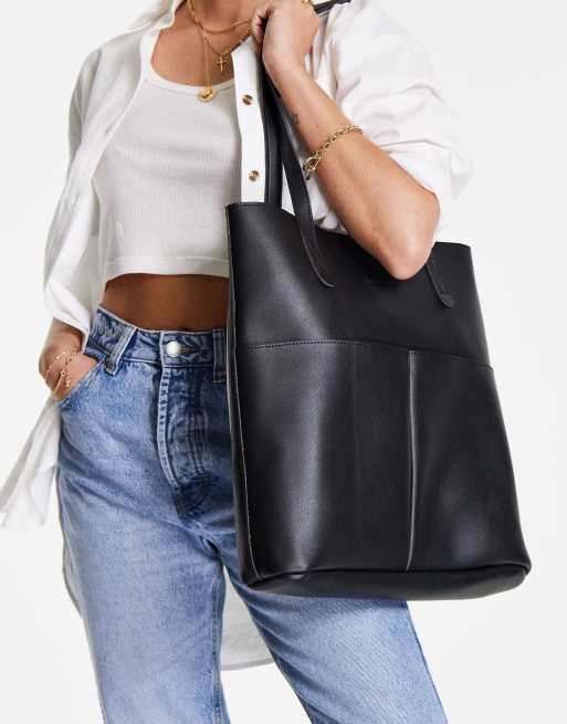 Claudia Canova unlined two pocket tote bag with removable pouch in black Very well made.