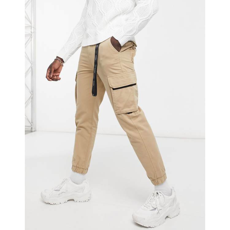 Bershka cargo pants with key chain in camel Very well made.