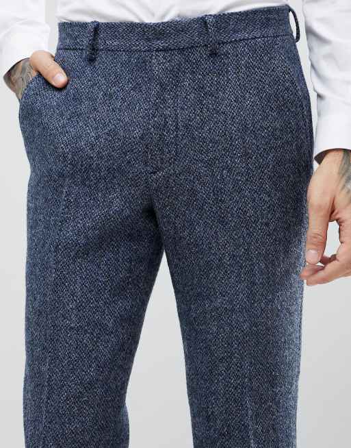 ASOS Slim Suit Trousers in 100 Wool Harris Tweed In Blue Mini Check Very well made.