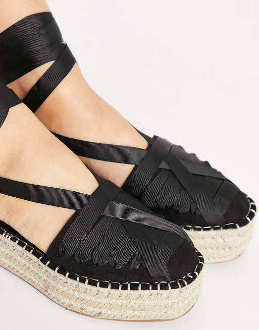 Alpargatas planas negras con tira anudada a la pierna de London Very well made.