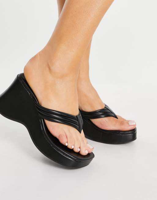 Sandalias de dedo negras con plataforma plana y dise o acolchado Tonic de ASOS DESIGN Very well made.