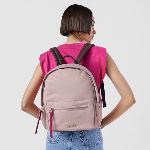 Khaki and pink Shelby Logogram Backpack TOUS Very well made.