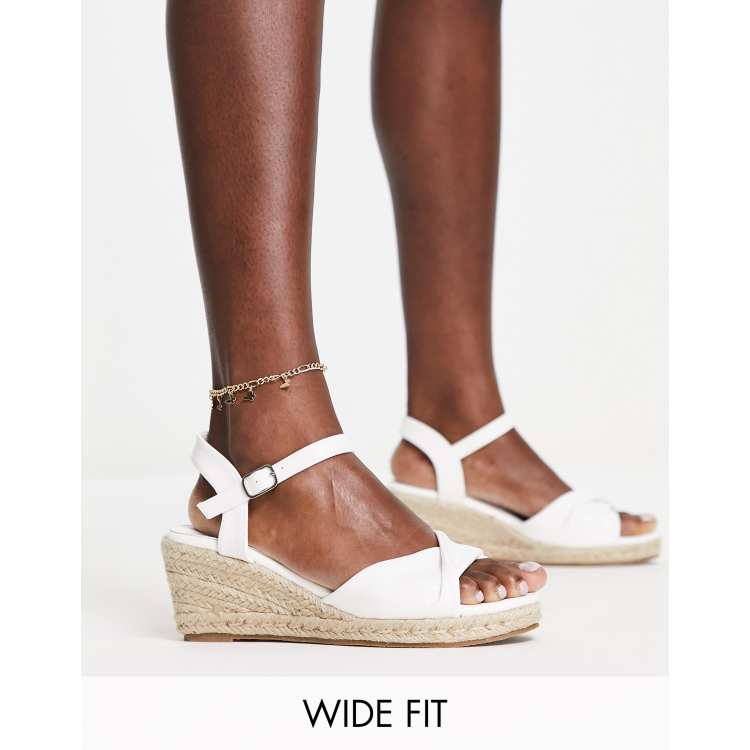 Glamorous Wide Fit Doorgestikte espadrille sandalen met halfhoge sleehak in wit PU Very well made.