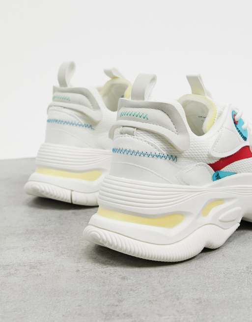 Bershka chunky sole sneakers in white with multi color detail Very well made.