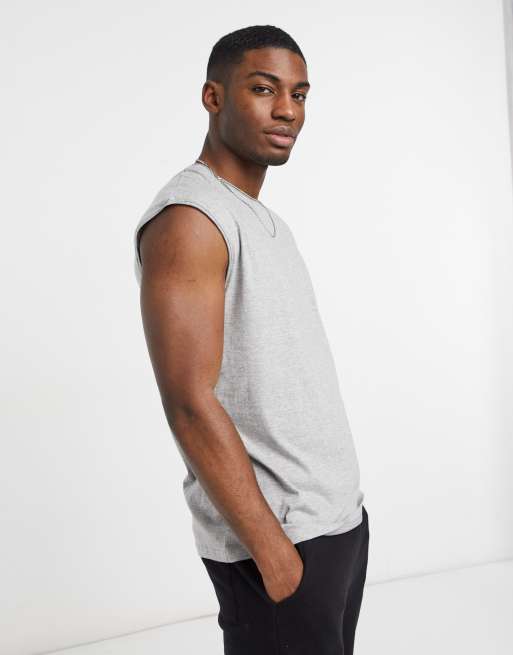 Brave Soul T shirt zonder mouwen in gem leerd lichtgrijs Very well made.