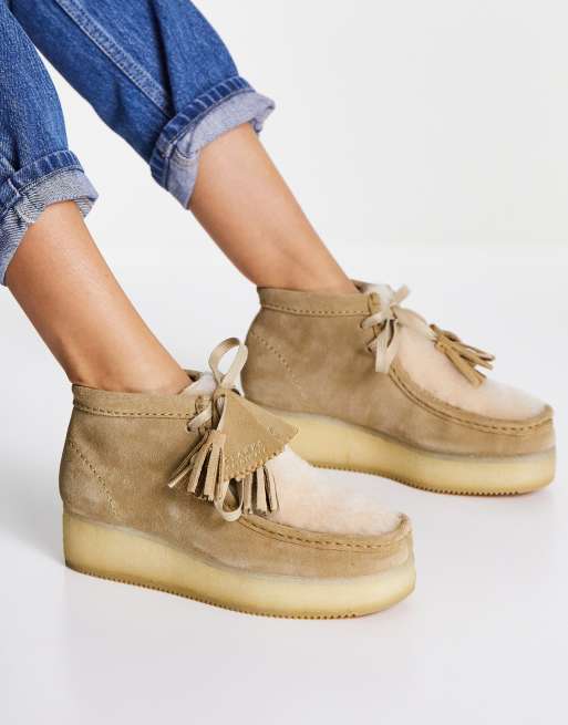 Clarks Originals Wallabee wedge ankle boot in light tan suede Very well made.