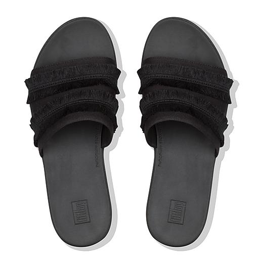 FitFlop Women s Sola Fringe Slide Sandal Shoes Black 05 US NEW Very well made.