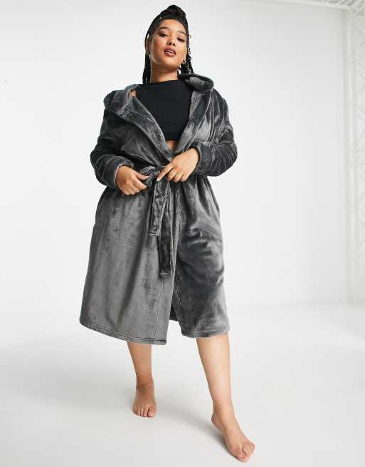 ASOS DESIGN Curve super soft fleece midi robe in gray Very well made.
