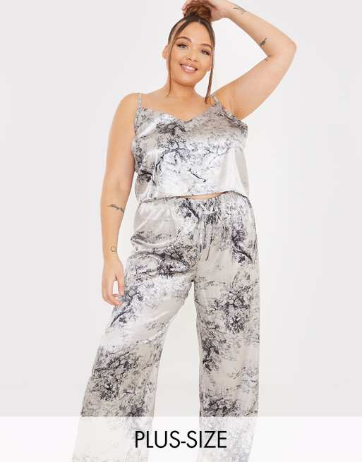 In The Style Plus x Lorna Luxe satin contrast trim pajama cami and pants set in navy multi Very well made.
