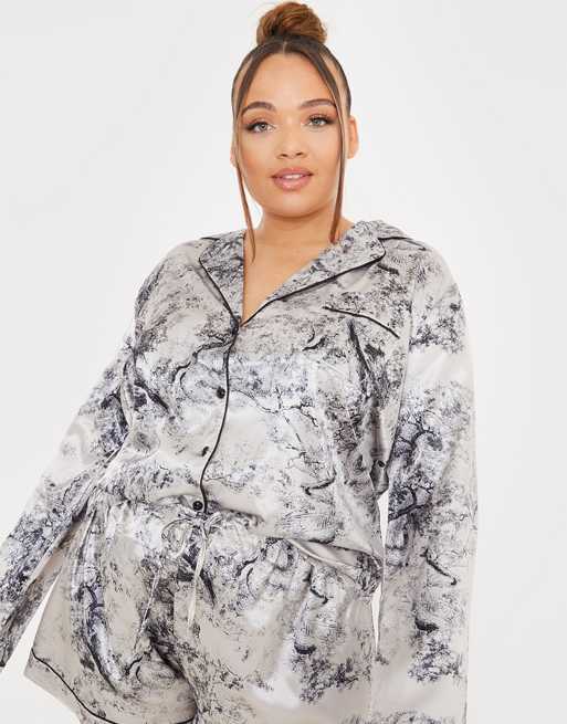 In The Style Plus x Lorna Luxe satin contrast trim pajama shirt and short set in navy multi Very well made.