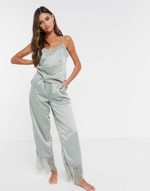 Loungeable satin lace pajama pants in sage green Very well made.
