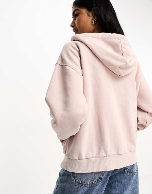 Stradivarius oversized zip up hoodie in blush Very well made.