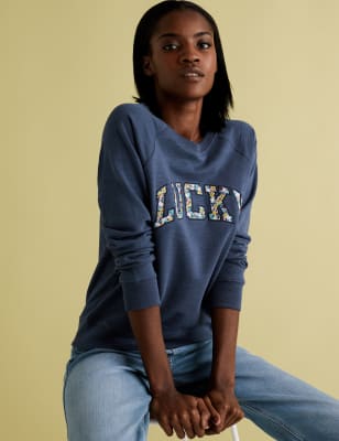Pure Cotton Lucky Slogan Relaxed Sweatshirt M S Collection M S Very well made.