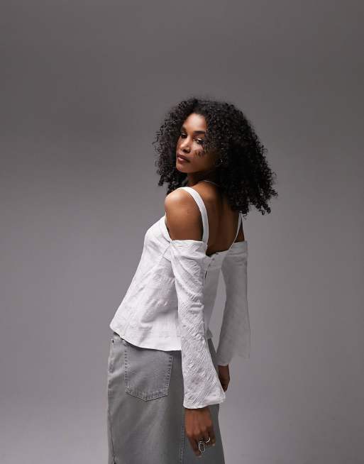 Topshop textured cold shoulder top in ivory ASOS Very well made.
