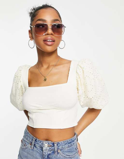 Miss Selfridge broderie puff sleeve top in cream ASOS Very well made.