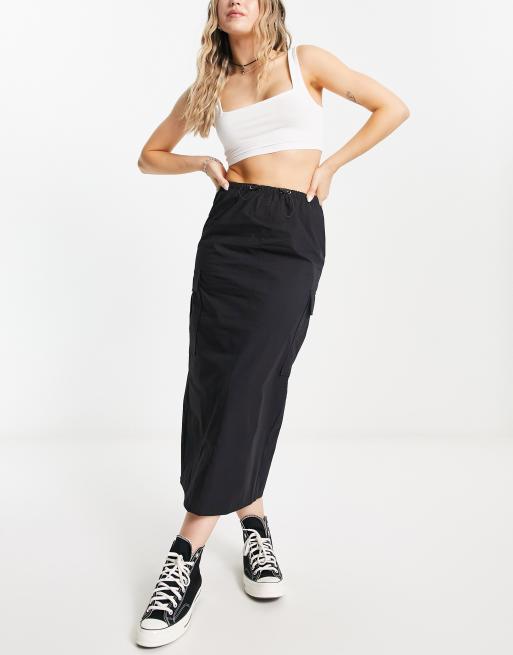 Pull Bear parachute cargo midaxi skirt in black with toggle detail Very well made.