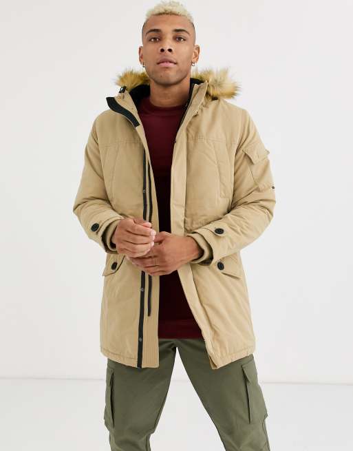 Bershka parka with fleece lined hood and detachable fur in beige Very well made.