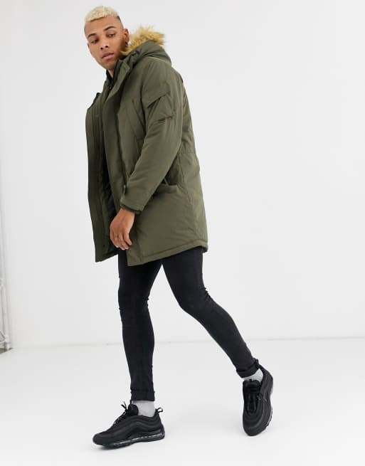 Bershka parka with fleece lined hood and detachable fur in khaki Very well made.