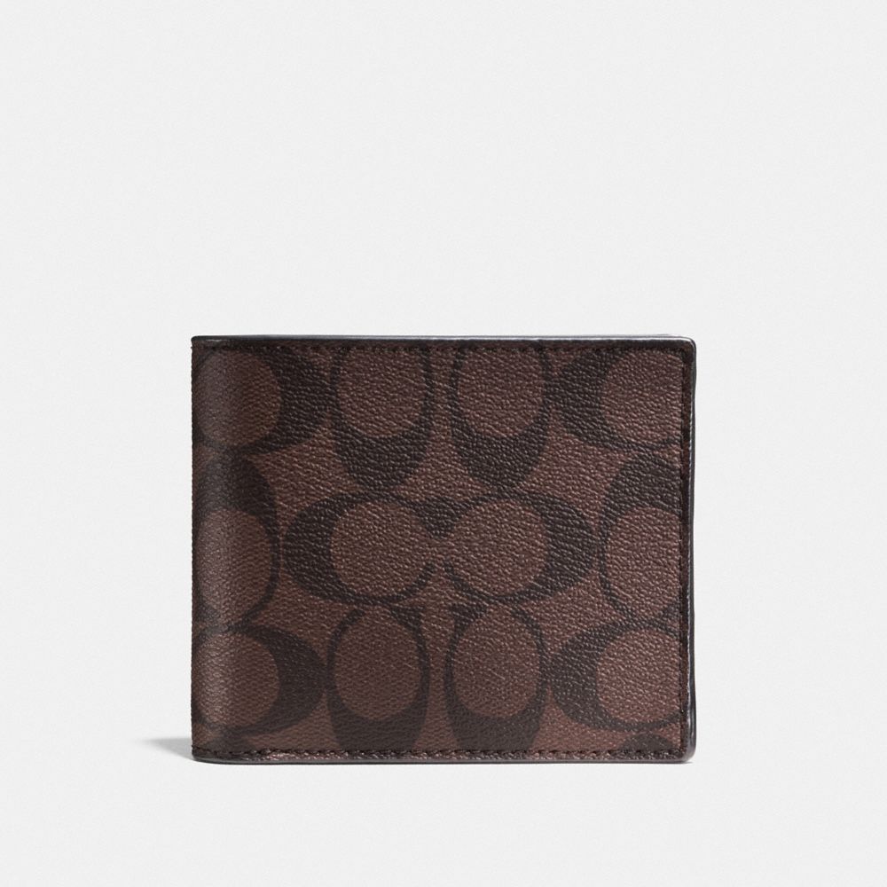 NEW Coach F74993 Compact ID Signature PVC Men Wallet Mahogany Brown Very well made.