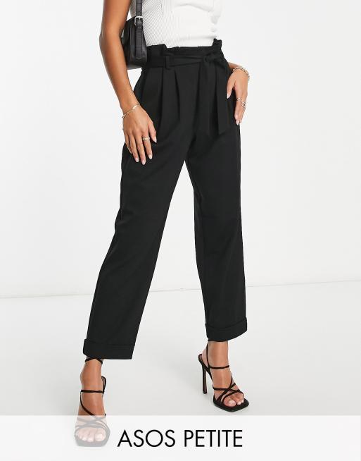 ASOS DESIGN Petite ponte peg trouser with paperbag tie waist in black Very well made.
