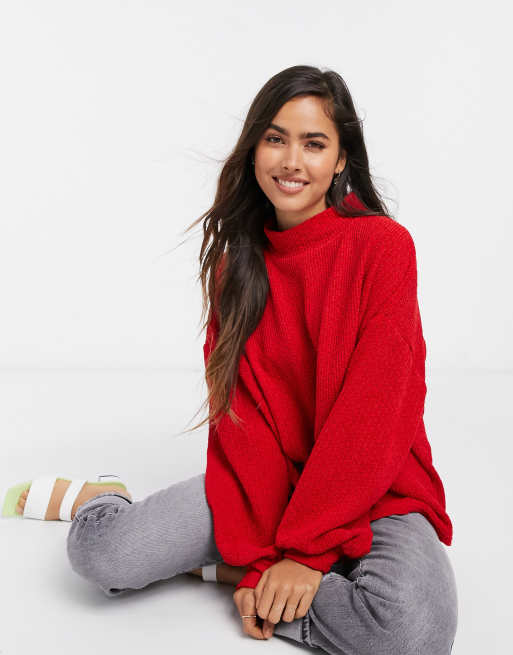 Mango Pull col montant avec manches ballon Rouge Very well made.