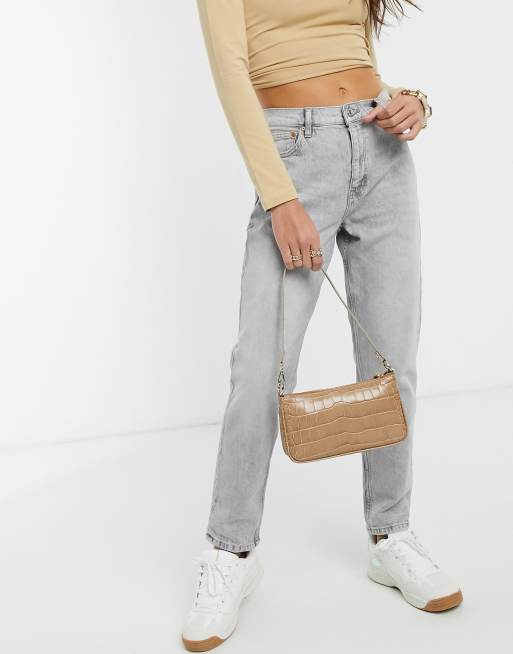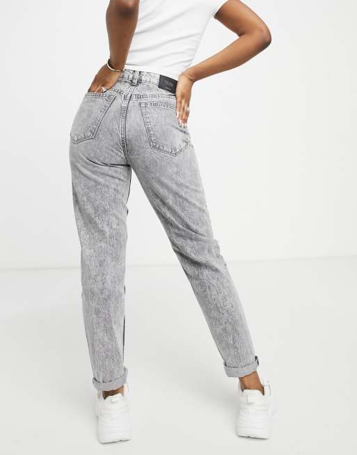 Stradivarius Jean mom slim en coton stretch Gris GREY Very well made.