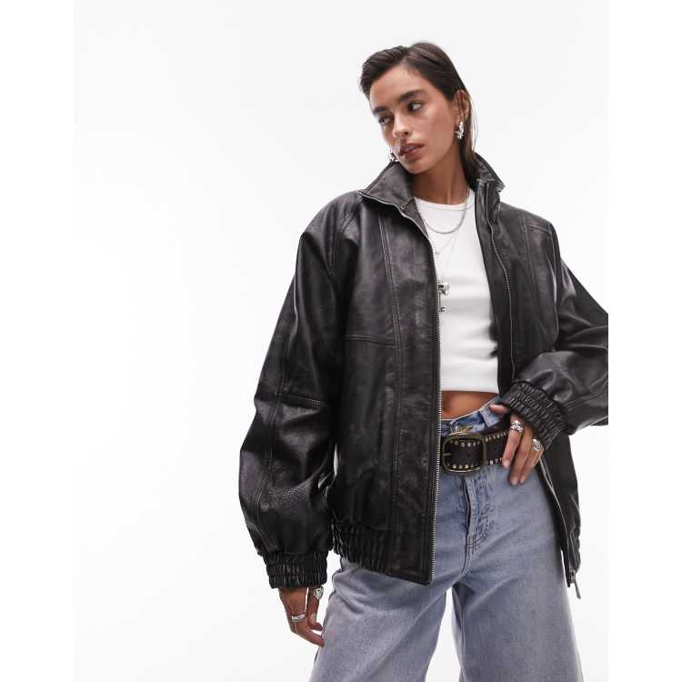 Topshop Bomber en cuir v ritable style ann es 80 avec coutures Noir d lav Very well made.